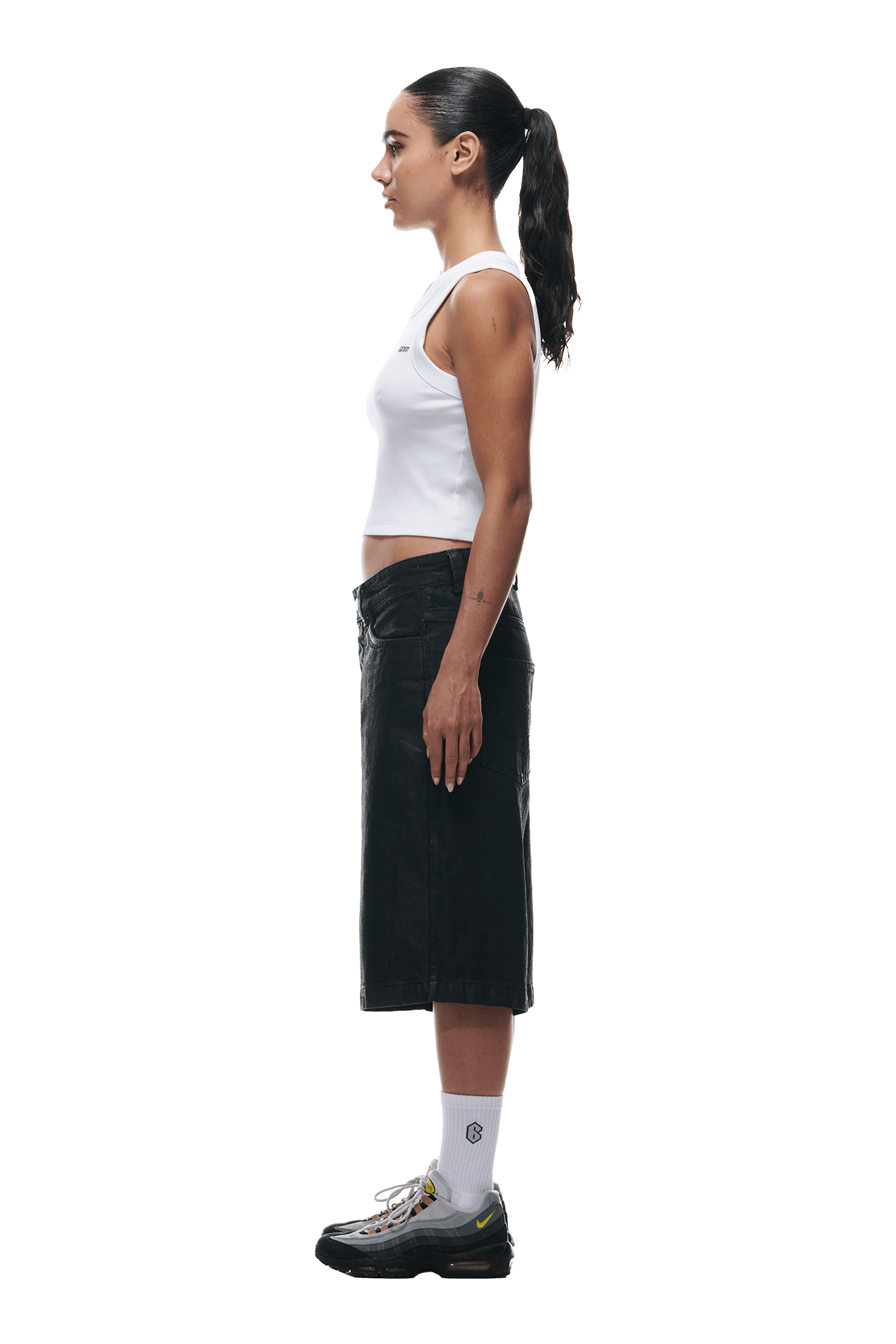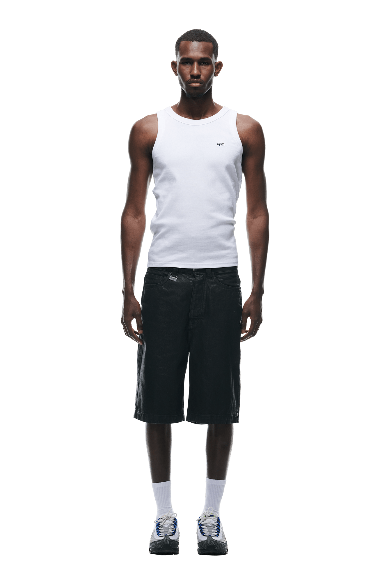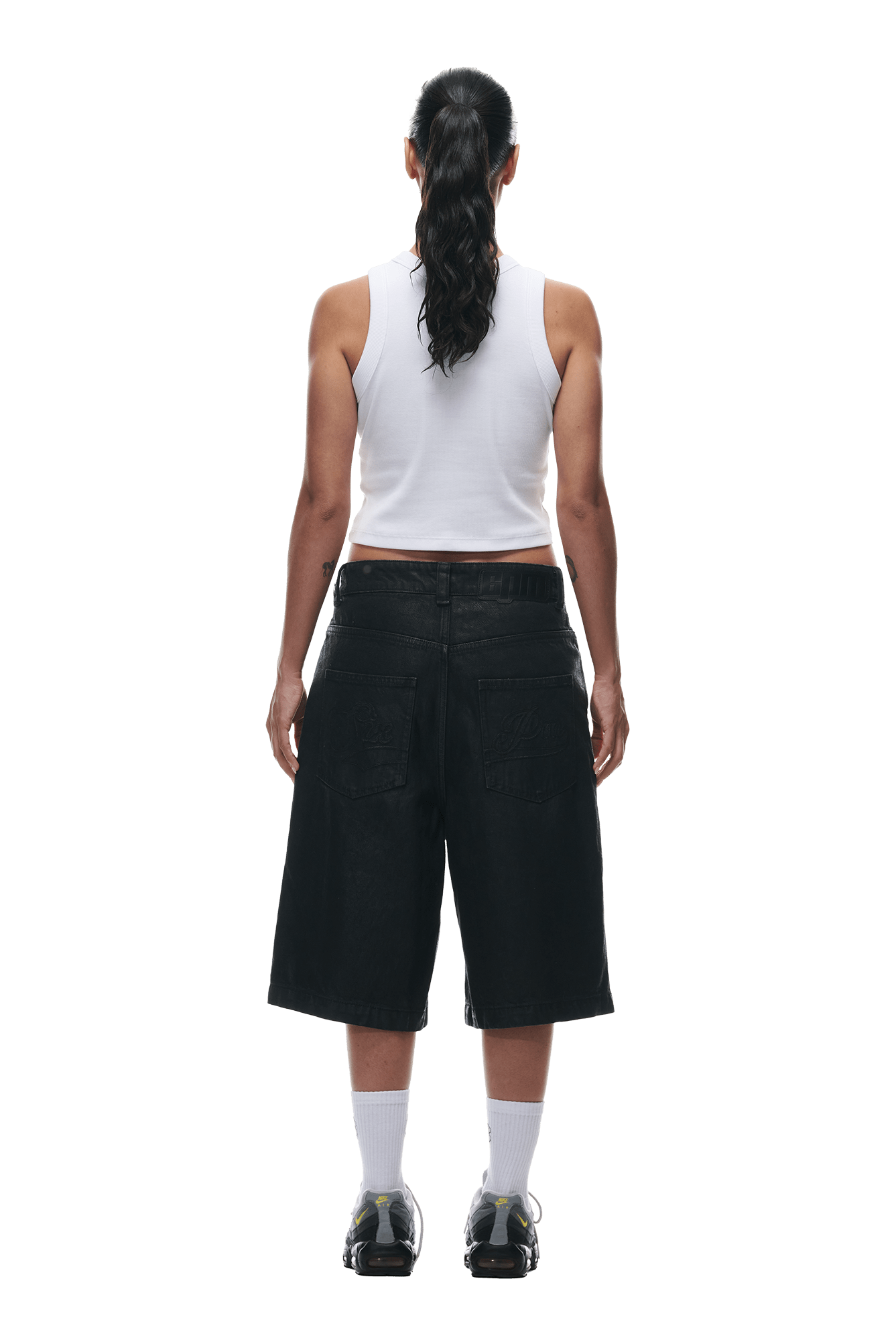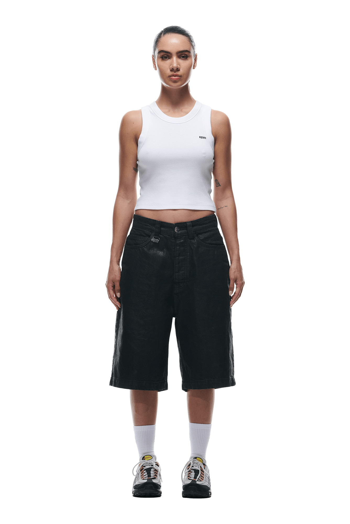 COATED DENIM SHORTS BLACK