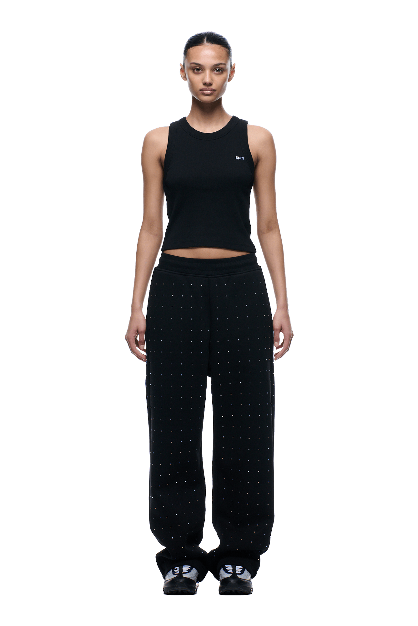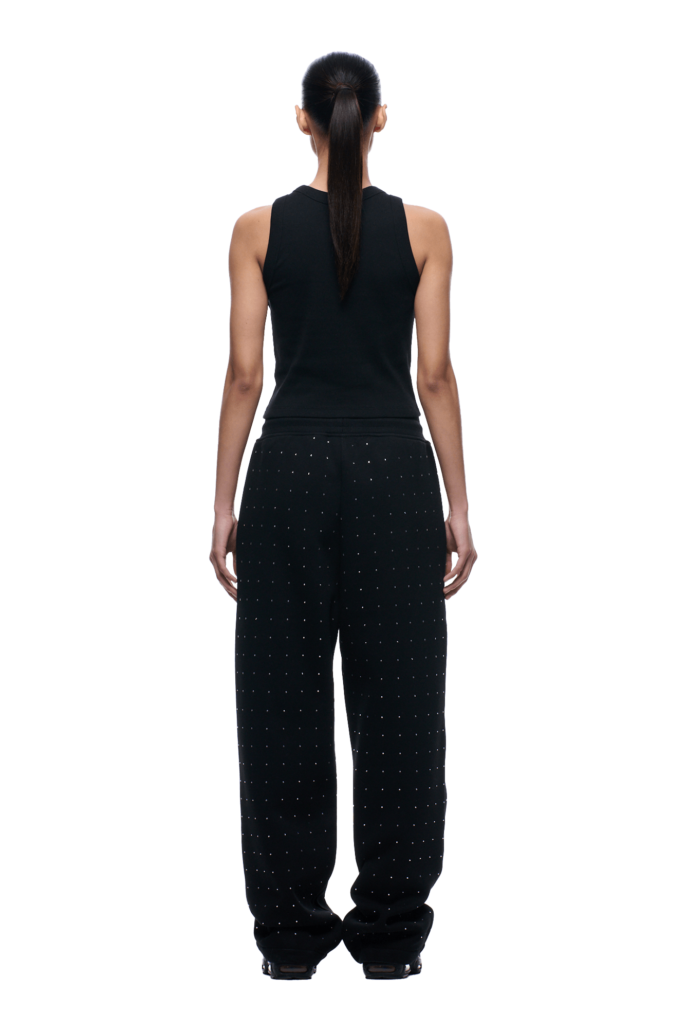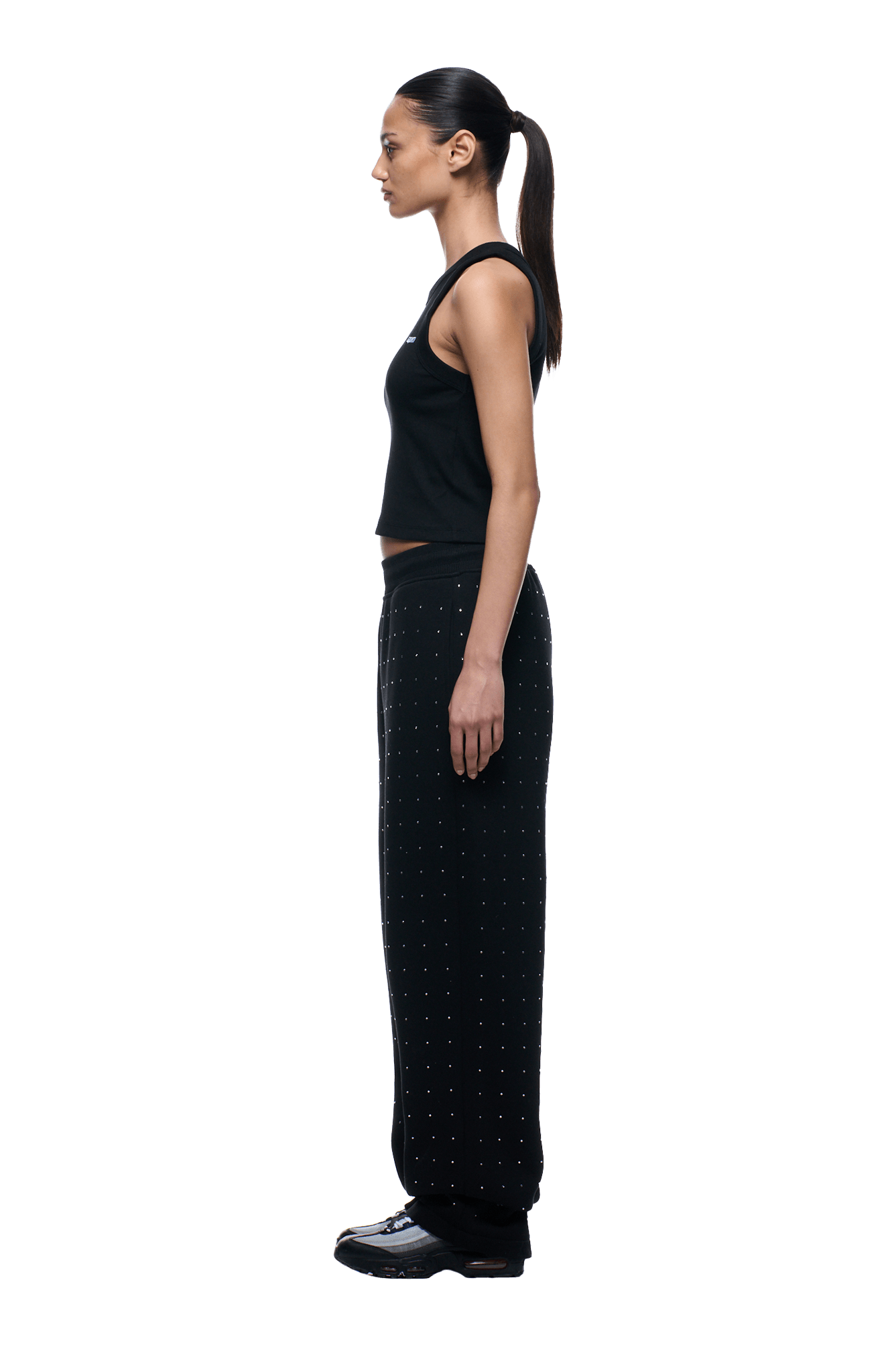 RHINESTONE OPEN LEG JOGGER BLACK